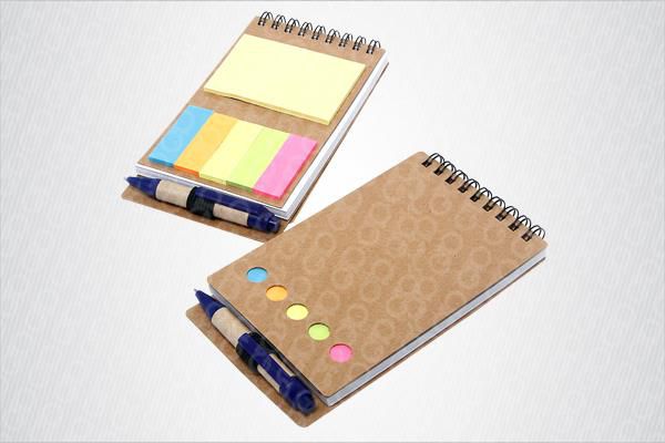 Bloco de anotações e caneta, material reciclado, com post-it. Contém 70 folhas. Tamanho da capa (CxL): 13,6 cm x 8,8 cm / Tamanho do verso (CxL): 15,1 cm x 8,8 cm / Tamanho da caneta (CxC): 9,3 cm x 3,1 cm. Gravação em 1 cor na capa do bloco já inclusa