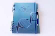 Caderno Prático Com Porta-Caneta, caderno capa dura revestida em papel couchê 150gr, impressão 4 cores, 01 lâmina de apresentação, impressão 4x0 cores, dados pessoais/calendários, folhas pautadas, miolo com 100 folhas internas impressas em uma cor, com lay out exclusivo para cada cliente, podendo conter marca d''água do seu logotipo, endereço eletrônico e telefone. Porta-caneta, caneta opcional. O fechamento é feito com elástico e espiral metálicos duplo tipo "wire-o". Formato 19,5x25cm.