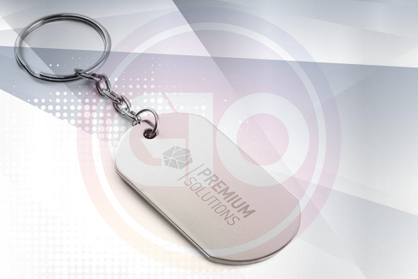 Chaveiro Plaqueta Personalizado. Alumínio. 29 x 54 x 1 mm. 1 gravação a laser já incluso.