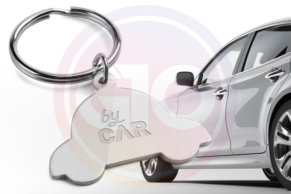 Chaveiro carro. Alumínio. 45 x 36 x 2 mm. 1 gravação a laser já incluso.