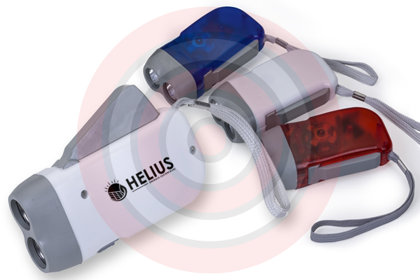 Lanterna plástica com leds, pressionando o “gatilho” gera energia para alimentar a lanterna dínamo. Possui botão para ligar/desligar lanterna, botão para t...