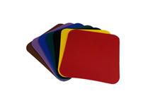 mouse pad, material de couro sintético - disponível em diversas cores como: marrom, lisas, azul, verde, preto, amarelo, vermelho (confirmar antes de fechar pedido) - tamanho: 20,5 cm x 16,5 cm - gravação em uma cor já incluso.