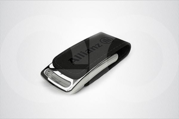 Pen drive de 4 GB, material de couro sintético com detalhes em metal - Gravação em 1 cor (1 lado) já incluso.