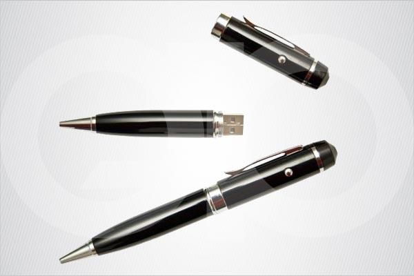 Caneta pen drive com laser point e 4GB de memória. Personalização já inclusa.