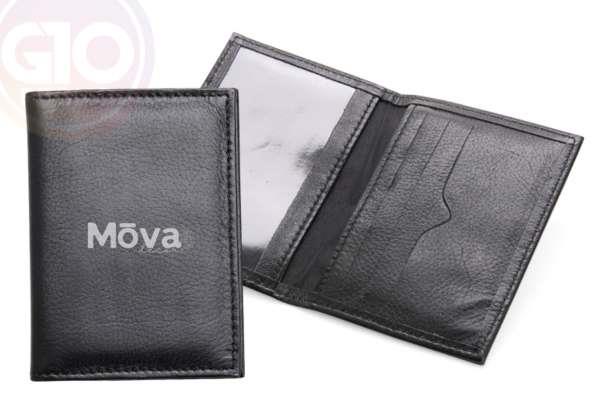 Porta Documento tamanho 12,5x8,2cm (fechado) em couro sintético, 01 gravação em baixo-relevo ou silk.